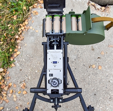 В комплект входит гранатомет с треногой, коробом, лентой и 50 выстрелами ВОГ Тюльпан Г.