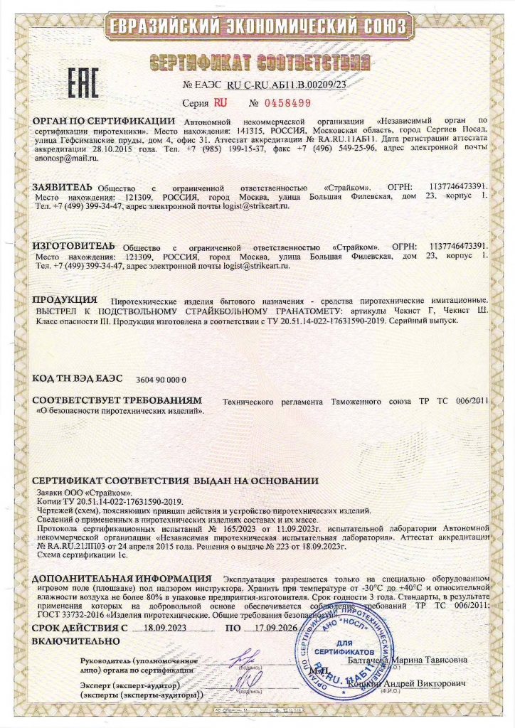 Подствольный выстрел для гильз с элетроподжигом от СтрайкАрт.