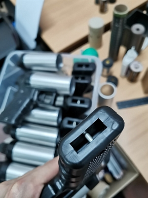 Инструкция по зарядке: 1. Открутить 3 винта. 2. Разобрать Малыш на две половины. 3. Изъять ствол-гильзу 4. Зарядить с помощью адаптера (в комплекте). 5. Собрать в обратном порядке.